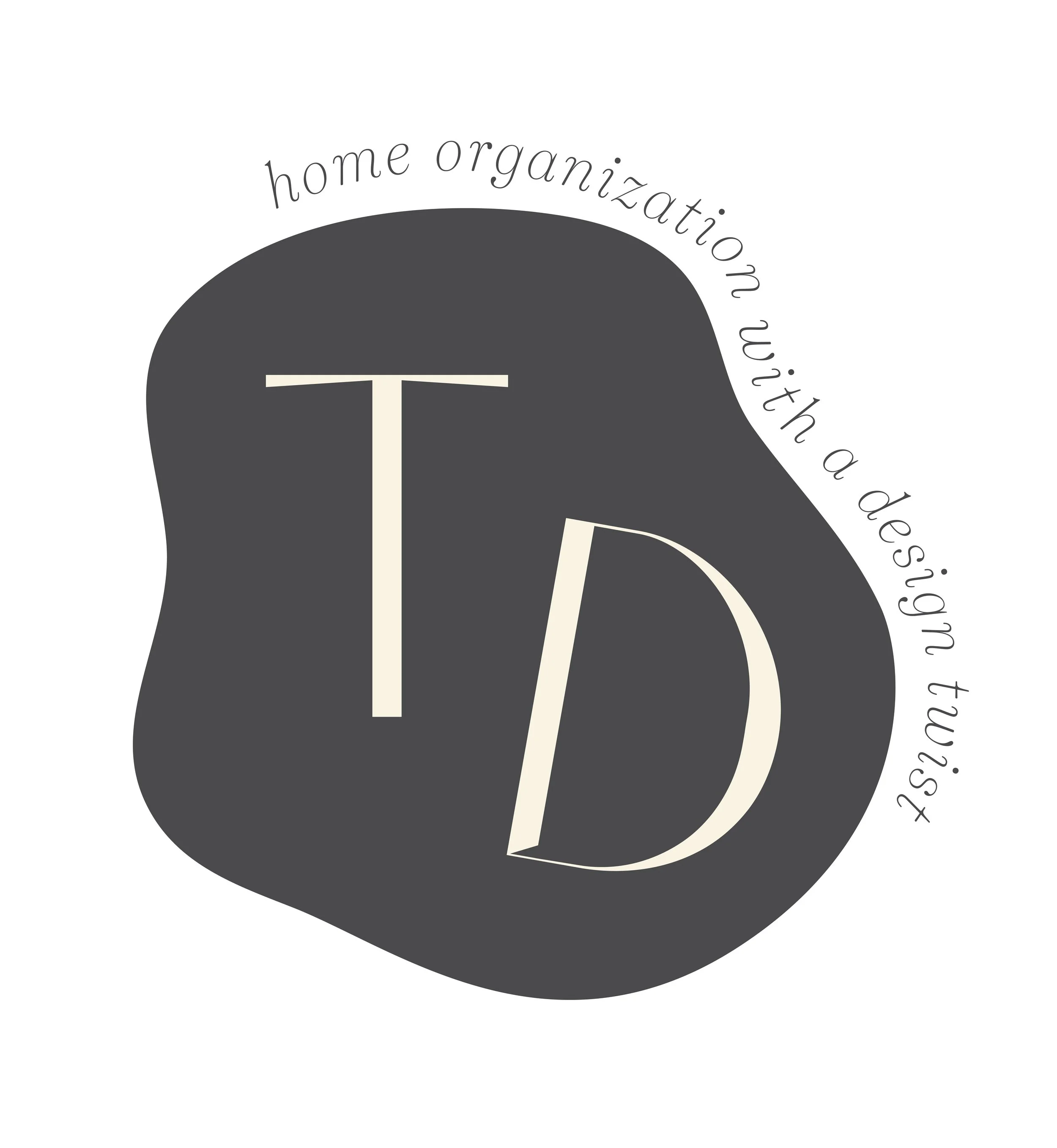 Early on in the design process we found that TIDY wasn’t quite a long enough word in itself to “jumble” in a waterfall shape, and TIDY Design was too long to do it legibly. But we liked the playful juxtaposition of an organization business and the word “tidy” being a little out of sorts, so that came through in each of the Round 1 concepts. We landed on the “splat” shape idea early on and it stuck, representative of an organic mess of something our TIDY Design gals might wipe off a client’s countertop, though we simplified the shape quite a bit.
